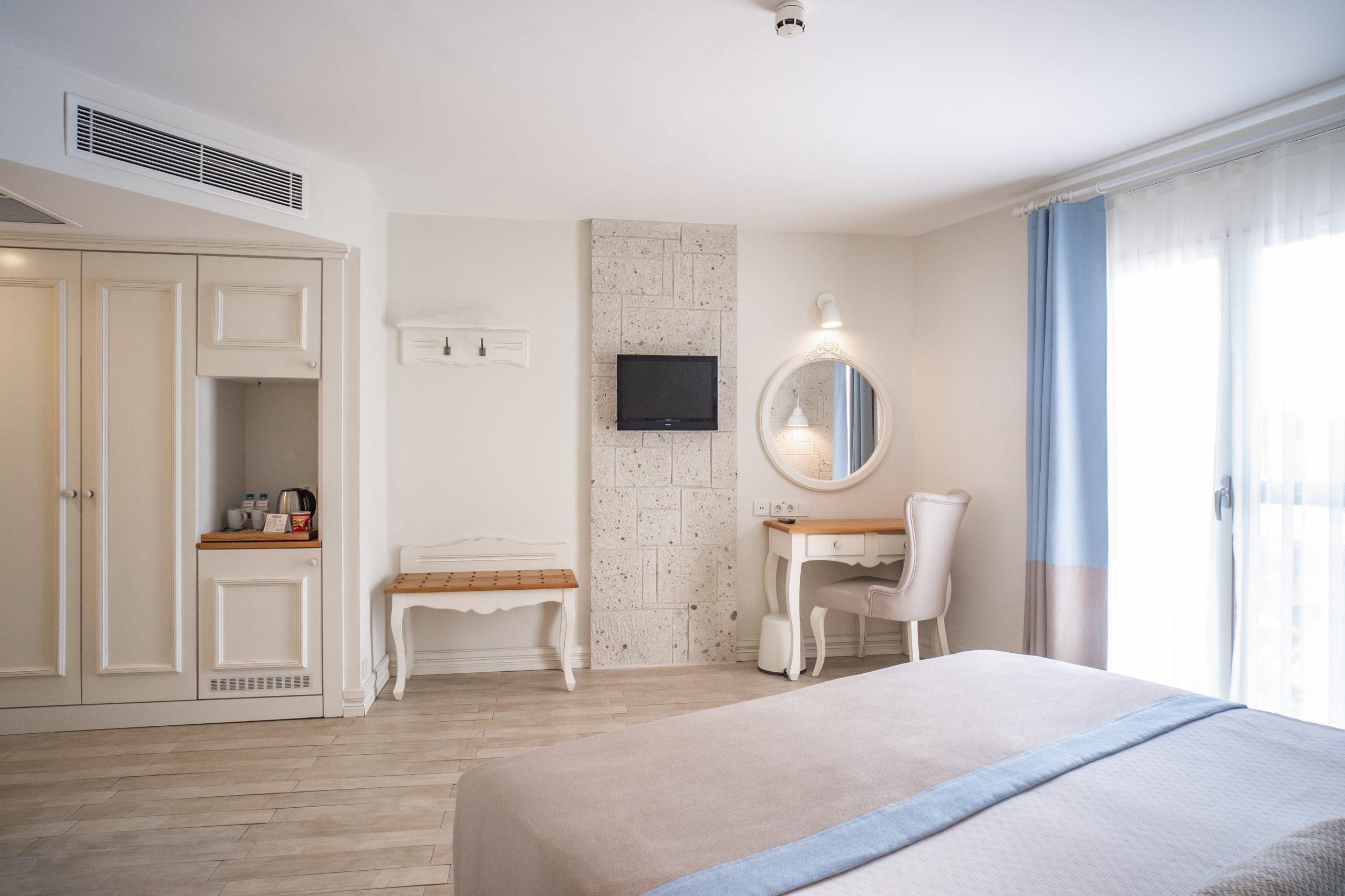Tesisin odalarında hakim olan sıcak bir dekorasyona sahip olan odalar 22 m2 genişliğe sahip. Havuz manzarasına açılan Fransız balkonları ile keyifli bir alan sunan odalar, ana binada yer alıyor. Restoran, havuz, SPA ve resepsiyon bölümlerine asansör ile rahatlıkla ulaşım sağlamanız mümkün. Premium Corner odalarda maksimum 3 yetişkin konaklayabilir.