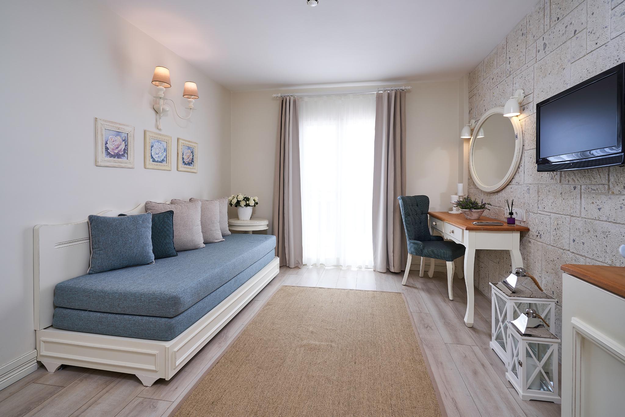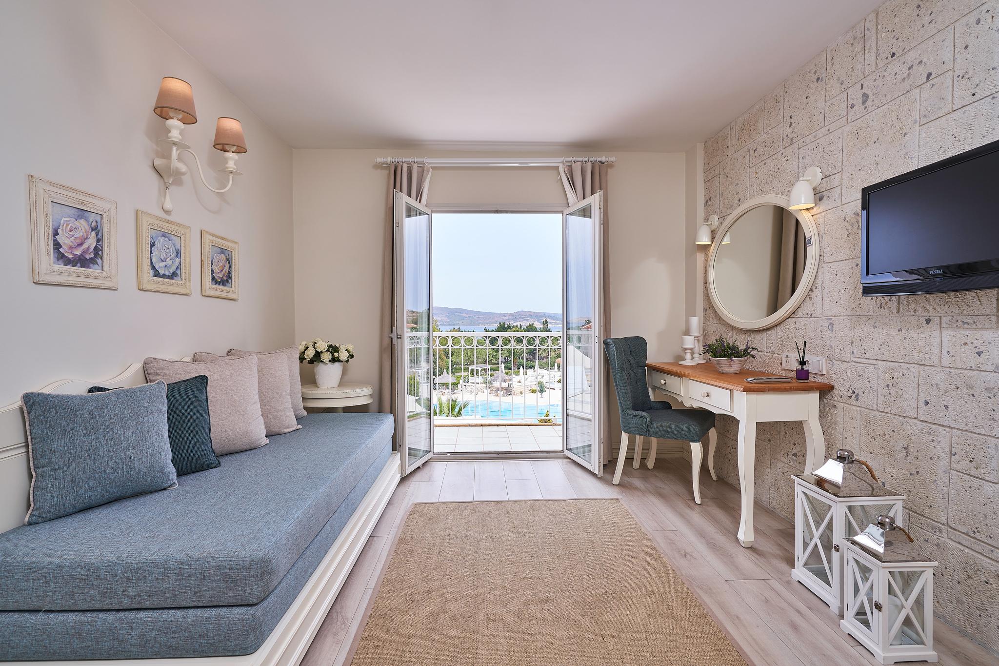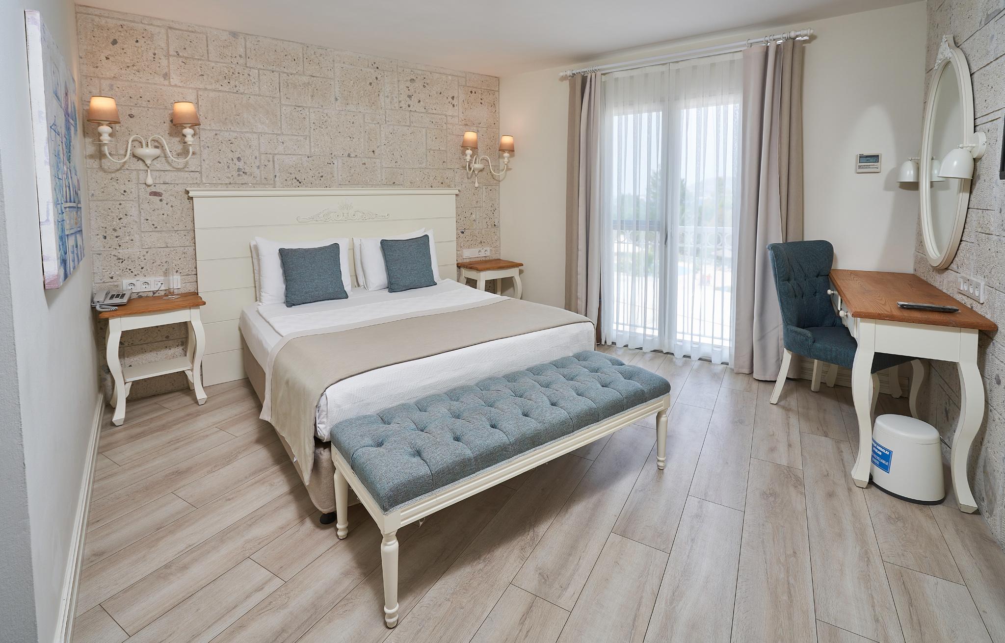 Rahatlatıcı renklerin ön planda olduğu Premium Suite odalar, 35 m2 genişliği ile ev sıcaklığında, ferah bir konaklama deneyimi sunuyor. Ana binada bulunan odalar, havuza açılan manzaraları ile keyifli bir atmosferine sahip. Odalarda biri küvetli 2 banyo, 2 klima ve 2 TV bulunuyor.